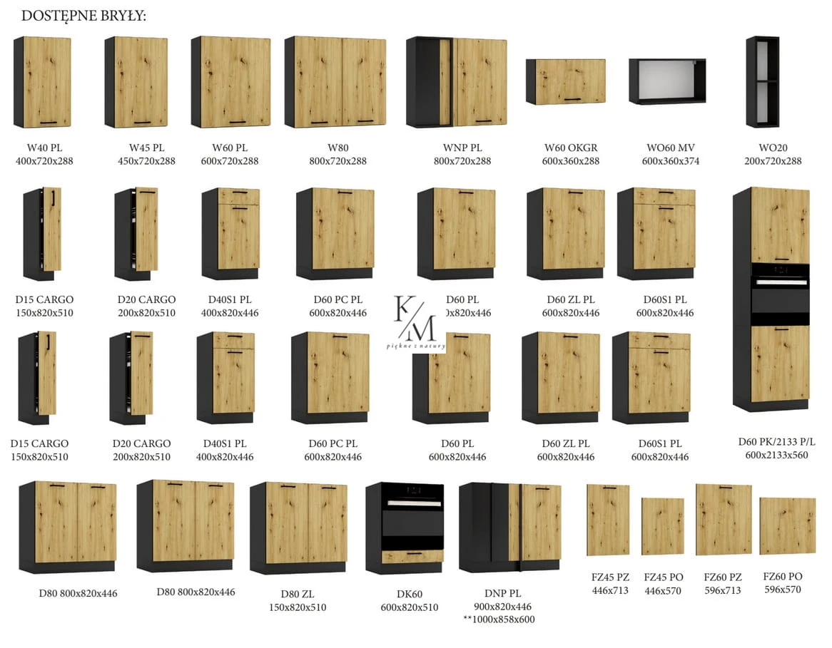ANIKA - DĄB ARTISAN - FR 60 PU front pod zabudowę zmywarki
