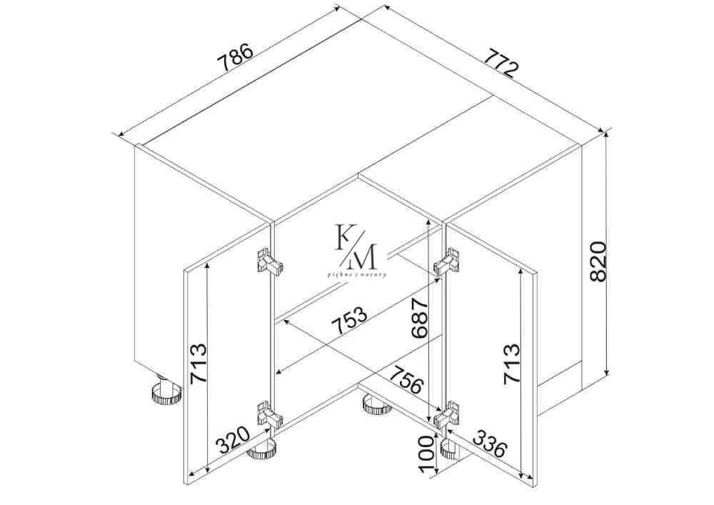 Szerokość całkowita: 786 (bez blatu), 900 (z blatem)