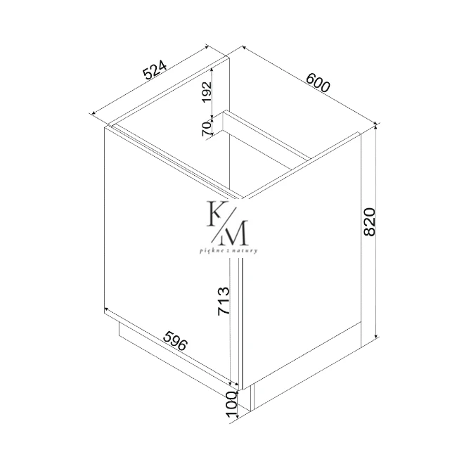 Front wykonany z płyty MDF foliowanej o grubości 16 mm, natomiast korpus z płyty laminowanej o grubości 16 mm. Cokół oraz podstawowe akcesoria montażowe w komplecie, cichy domyk w standardzie, natomiast uchwyt oraz blat do wyboru w opcjach dodatkowych.