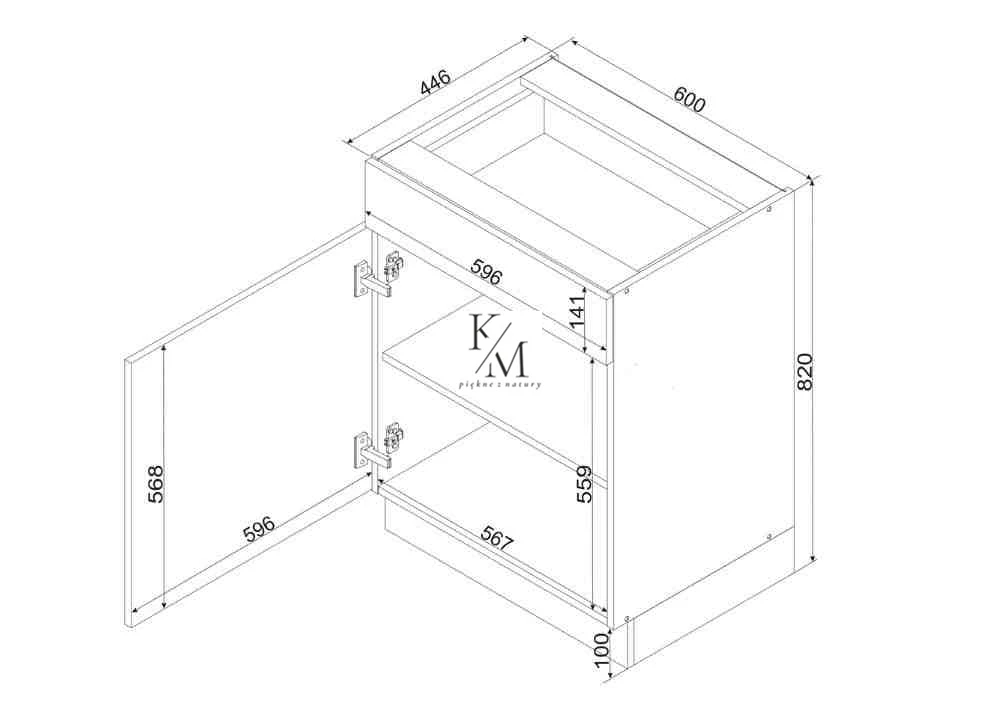 GIANNA szafka dolna D60 S/1 z szufladą i półkami.
