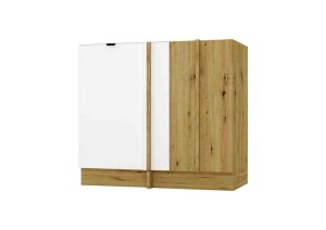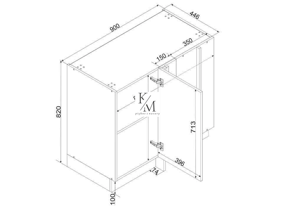 Front i korpus z płyty laminowanej o grubości 16 mm. Cokół w zestawie z szafką, podstawowe akcesoria montażowe w komplecie. Szafki dolne bez blatu. Blat dedykowany kolekcji to blat czarna skała lub petra beż. Ponadto istnieje możliwość zakupu innych blatów z dostępnej oferty.