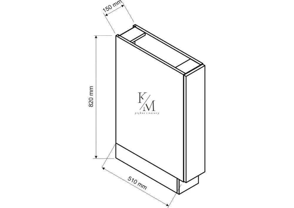 Cokół w zestawie z szafką, podstawowe akcesoria montażowe w komplecie. Szafki dolne bez blatu. Blat dedykowany kolekcji to blat czarna skała lub petra beż. Ponadto istnieje możliwość zakupu innych blatów z dostępnej oferty.