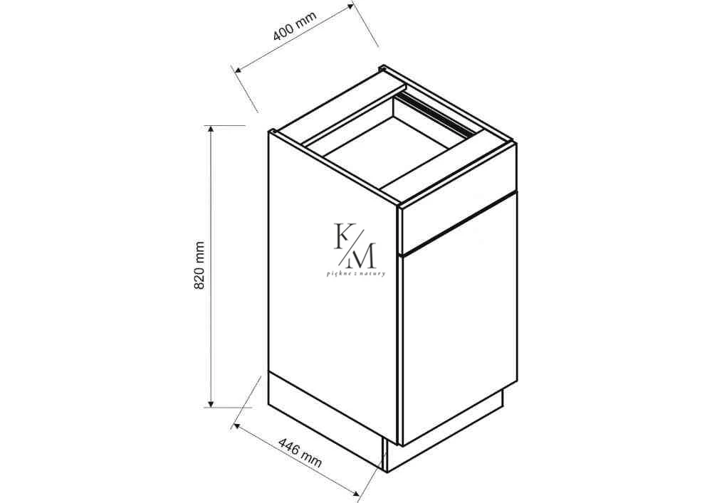 Cokół w zestawie z szafką, podstawowe akcesoria montażowe w komplecie. Szafki dolne bez blatu. Blat dedykowany kolekcji to blat czarna skała lub petra beż. Ponadto istnieje możliwość zakupu innych blatów z dostępnej oferty.