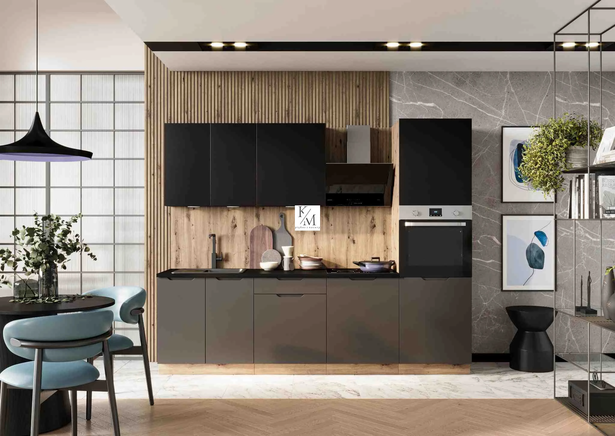 Fronty dostępne w dwóch kolorach: szary jasny, czarny oraz mocca grey (szafki dolne).