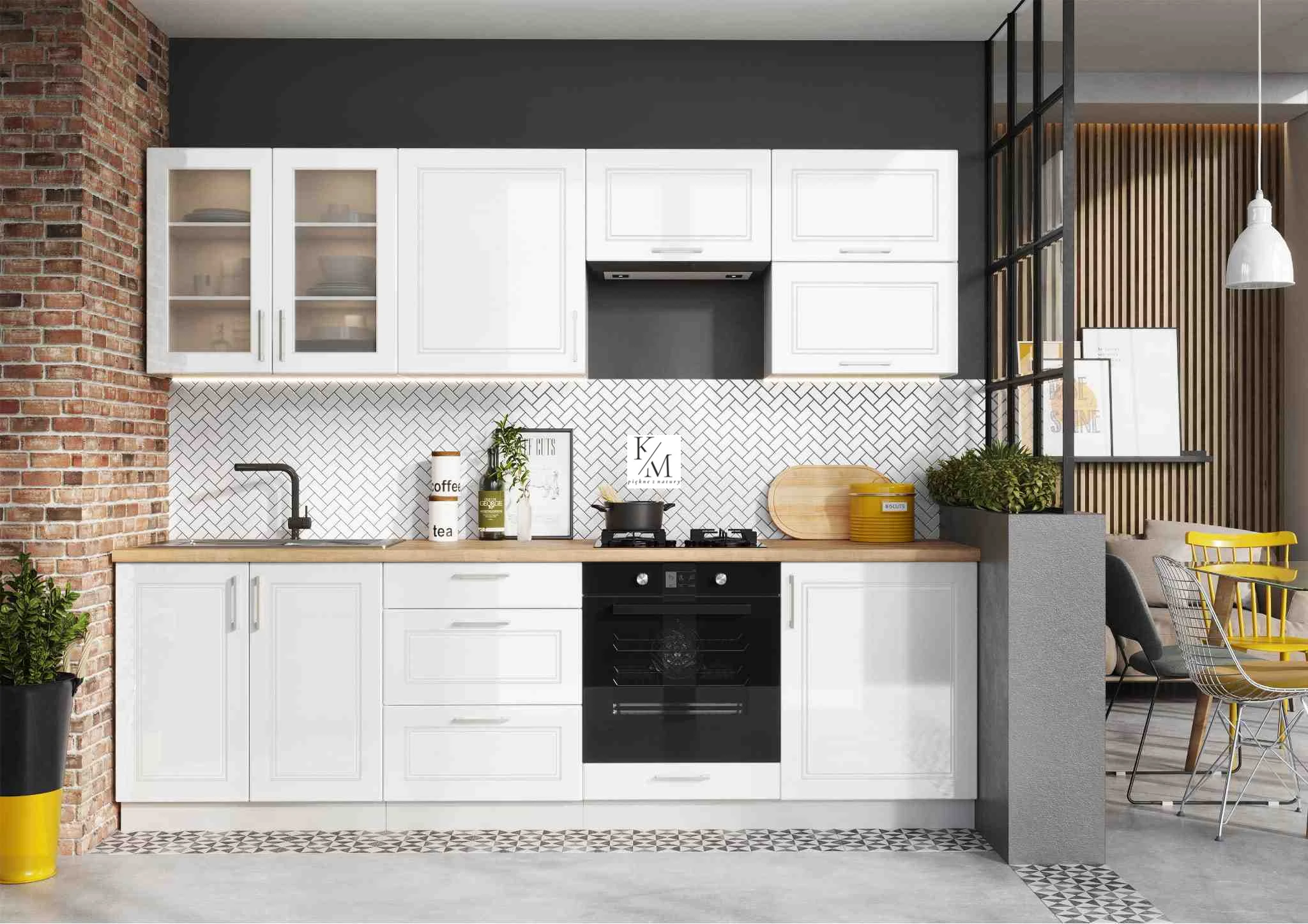 Kuchnia NATALIA fronty BIAŁY POŁYSK korpus POPIEL: