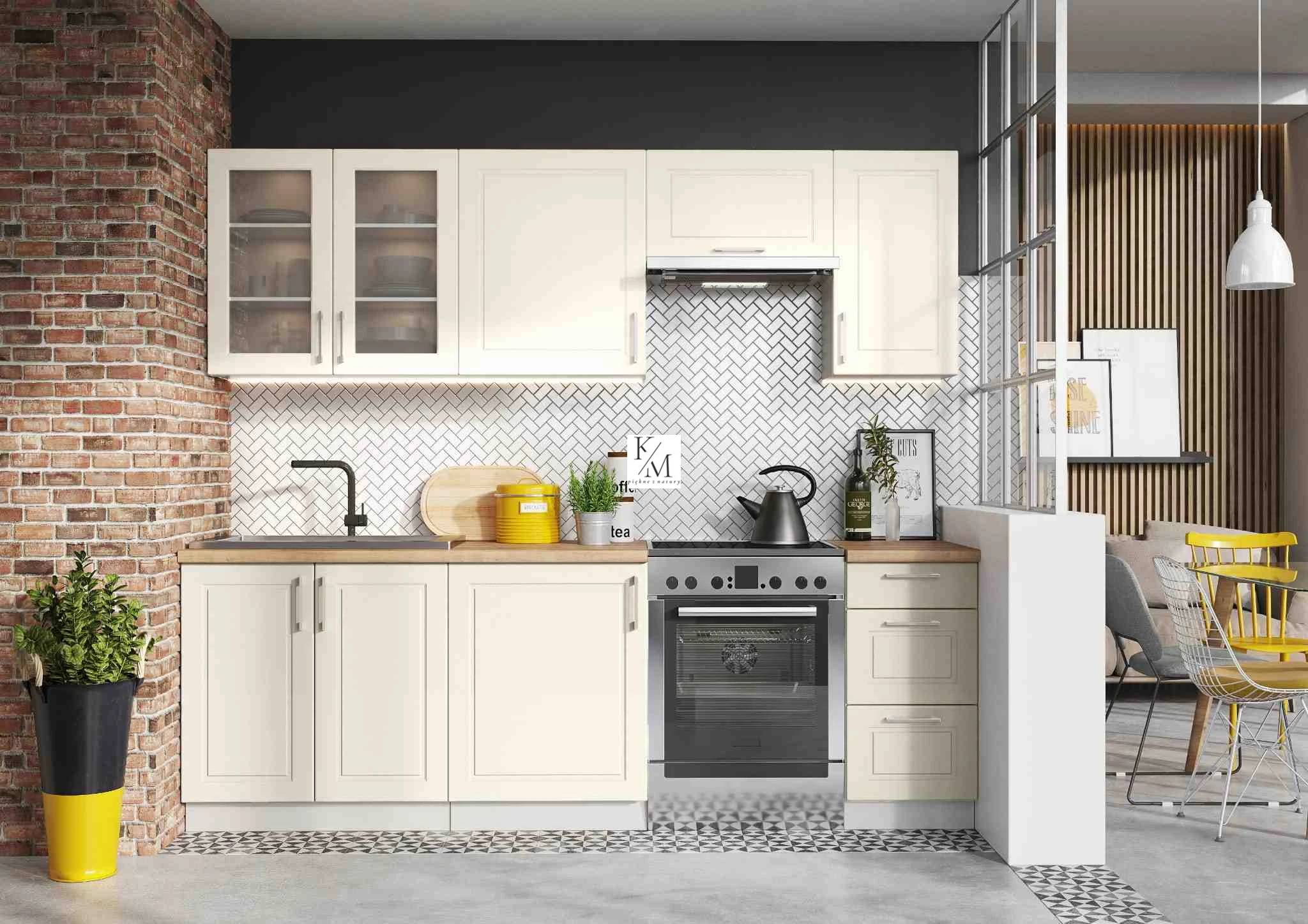 Kuchnia NATALIA fronty KREMOWY MAT korpus POPIEL: