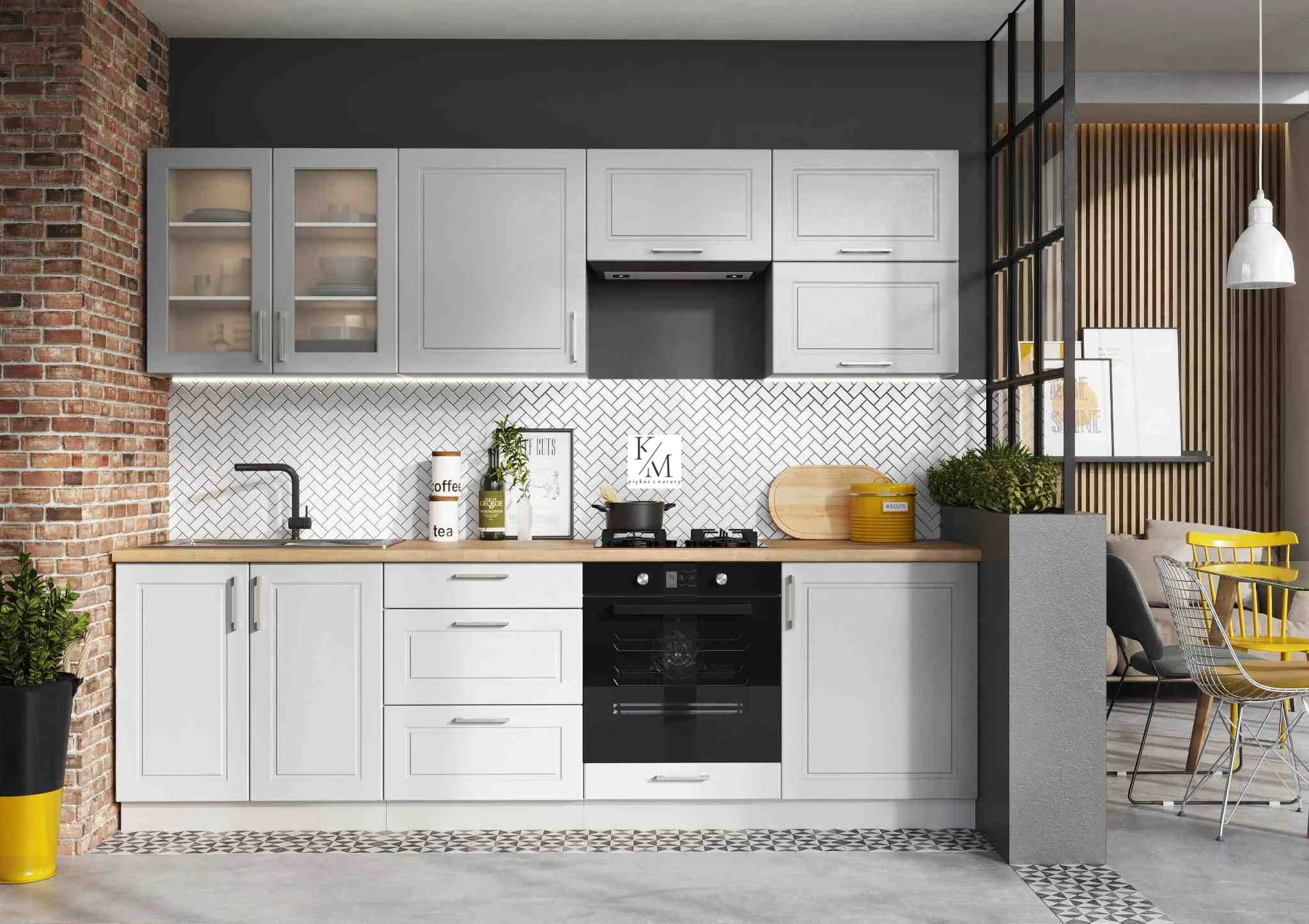 Kuchnia NATALIA fronty BIAŁY POŁYSK korpus POPIEL: