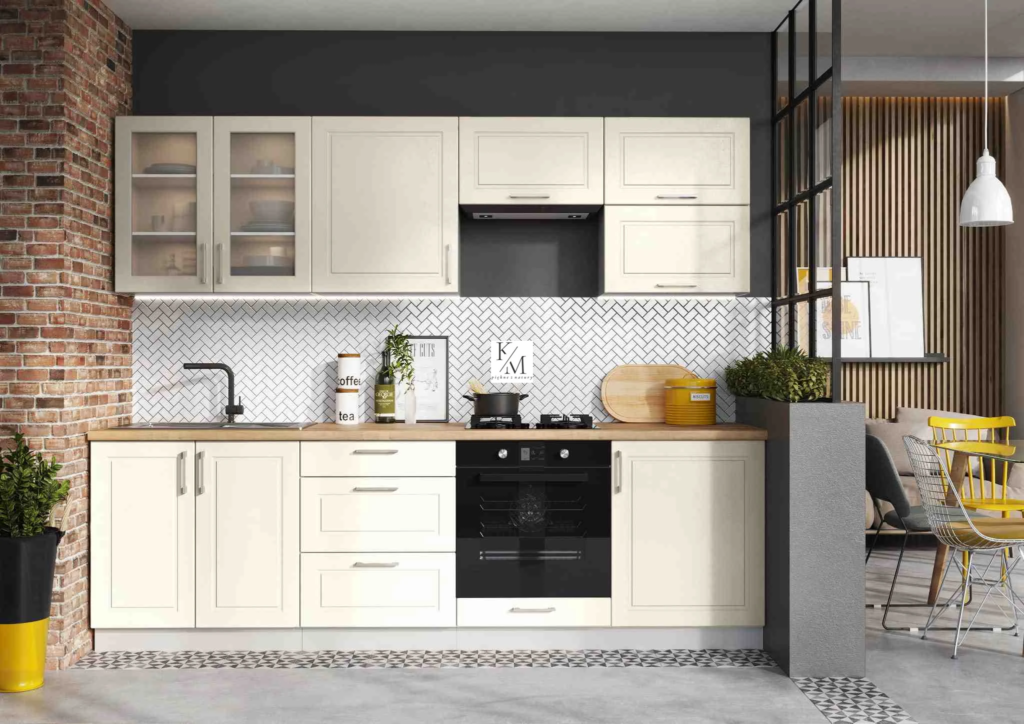 Kuchnia NATALIA fronty KREMOWY MAT korpus POPIEL: