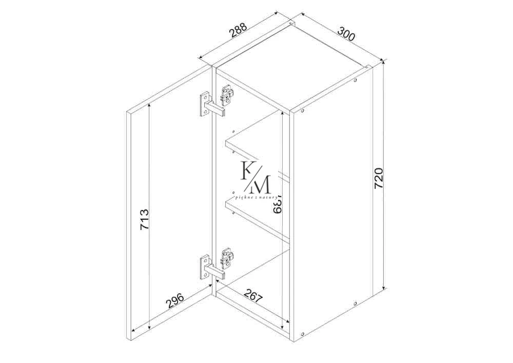 Front i korpus z płyty laminowanej o grubości 16 mm. Możliwość regulacji wysokości półek, podstawowe akcesoria montażowe w komplecie.