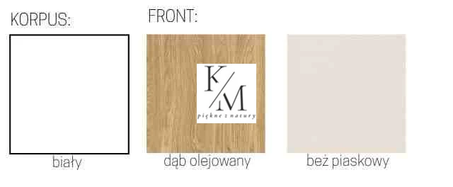 Front i korpus z płyty laminowanej o grubości 16 mm. Możliwość regulacji wysokości półek, podstawowe akcesoria montażowe w komplecie.