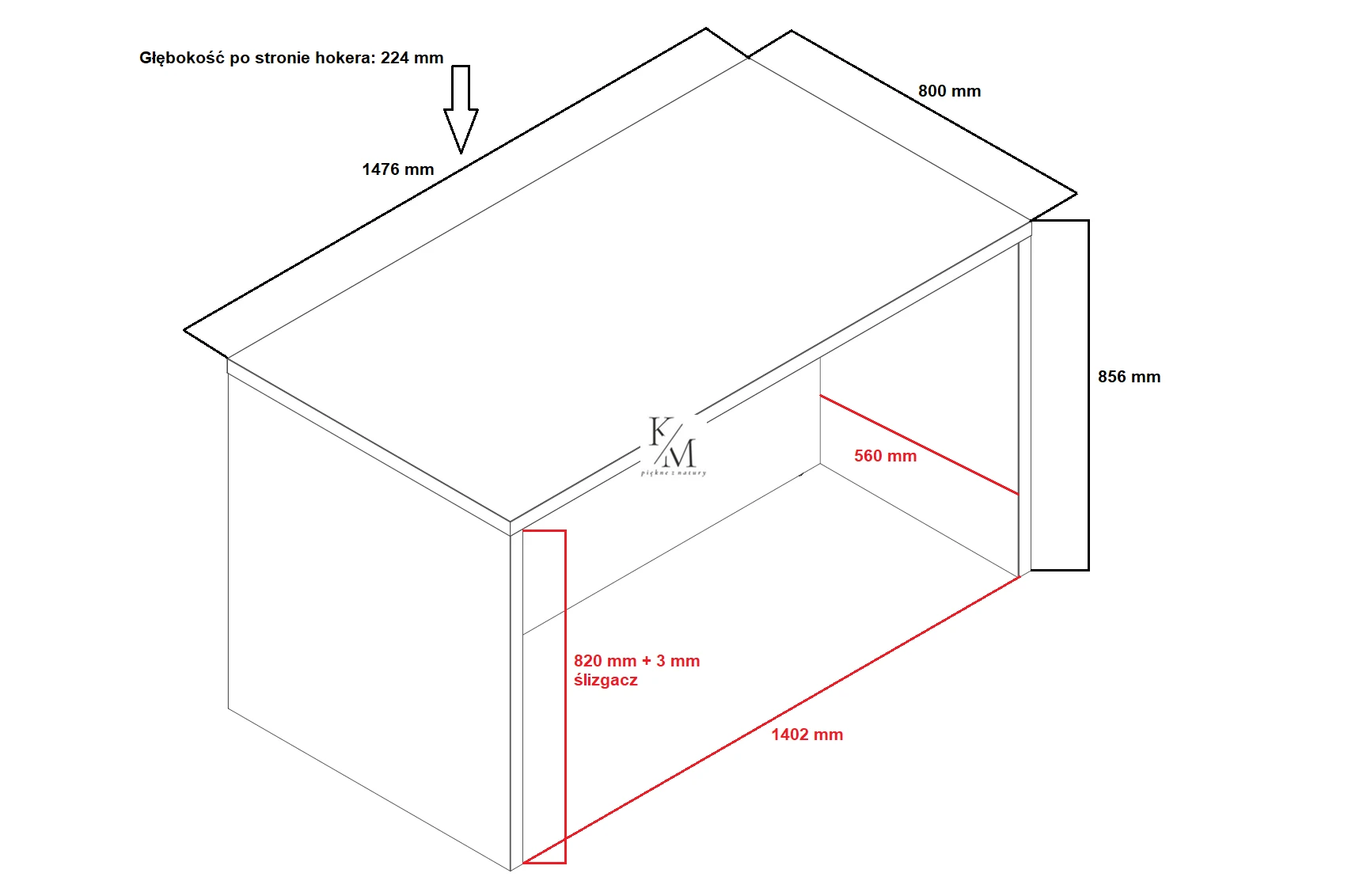 - wyspa wysyłana jest w 3 paczkach na palecie do samodzielnego montażu