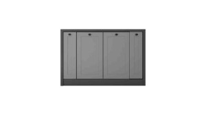 Wyspy kuchenne wolnostojące wyposażone w zamykane szafki doskonale odnajdą się we wnętrzu każdej kuchni, tworząc przy tym dodatkowe miejsce na przechowywanie, a także powiększając blat roboczy. Wyspa kuchenna została także wyposażona we wnękę na hokery, dzięki czemu może pełnić rolę stołu. Szafki znajdujące się w wyspie kuchennej zostały wykonane z płyty meblowej o grubości 16mm, dodatkowo fronty szafek wykończone są w połysku. Zaletą tego rodzaju materiału jest wysoka odporność na wpływ zewnętrznych czynników takich jak para wodna, wysoka temperatura, rozlane ciecze. Obrzeża zabezpieczone okleiną ABS zwiększają wytrzymałość wyspy w kuchni.