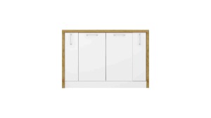 Wyspy kuchenne wolnostojące wyposażone w zamykane szafki doskonale odnajdą się we wnętrzu każdej kuchni, tworząc przy tym dodatkowe miejsce na przechowywanie, a także powiększając blat roboczy. Wyspa kuchenna została także wyposażona we wnękę na hokery, dzięki czemu może pełnić rolę stołu. Szafki znajdujące się w wyspie kuchennej zostały wykonane z płyty meblowej o grubości 16mm, dodatkowo fronty szafek wykończone są w połysku. Zaletą tego rodzaju materiału jest wysoka odporność na wpływ zewnętrznych czynników takich jak para wodna, wysoka temperatura, rozlane ciecze. Obrzeża zabezpieczone okleiną ABS zwiększają wytrzymałość wyspy w kuchni.
