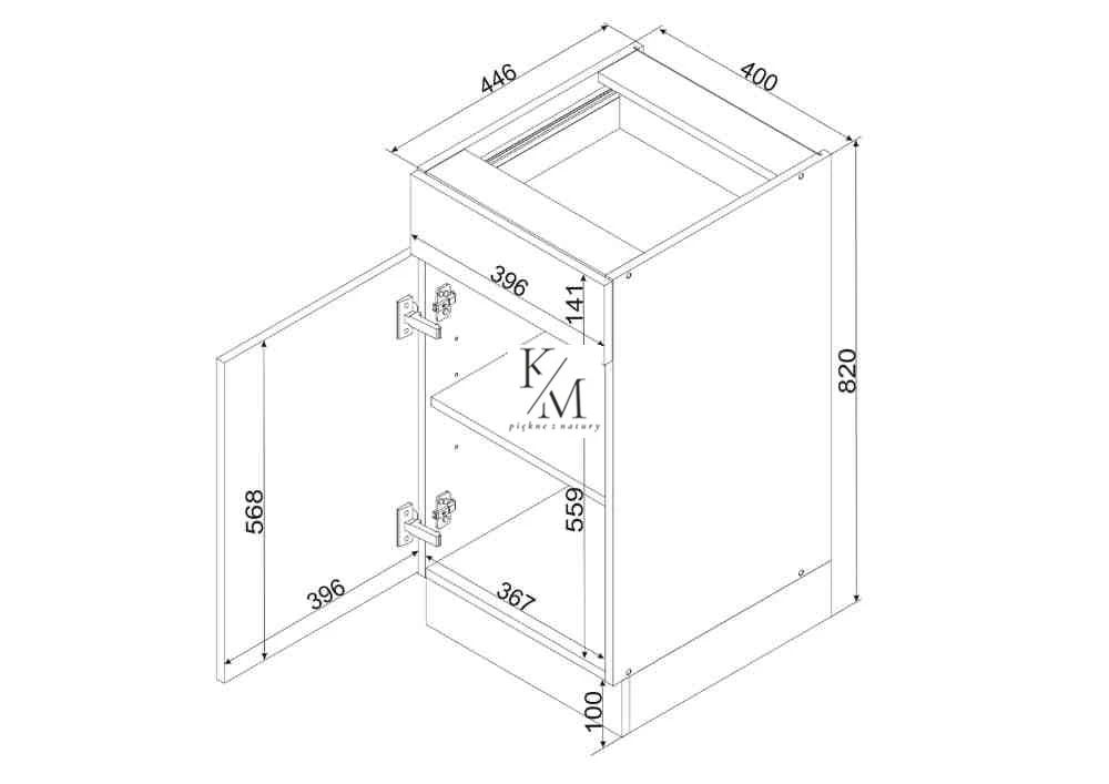 2. D40 S/1 P/L - szafka kuchenna z półkami i szufladami - 3 sztuki