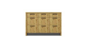 Wyspy kuchenne wolnostojące wyposażone w zamykane szafki doskonale odnajdą się we wnętrzu każdej kuchni, tworząc przy tym dodatkowe miejsce na przechowywanie, a także powiększając blat roboczy. Wyspa kuchenna została także wyposażona we wnękę na hokery, dzięki czemu może pełnić rolę stołu. Szafki znajdujące się w wyspie kuchennej zostały wykonane z płyty meblowej o grubości 16mm, dodatkowo fronty szafek wykończone są w połysku. Zaletą tego rodzaju materiału jest wysoka odporność na wpływ zewnętrznych czynników takich jak para wodna, wysoka temperatura, rozlane ciecze. Obrzeża zabezpieczone okleiną ABS zwiększają wytrzymałość wyspy w kuchni.