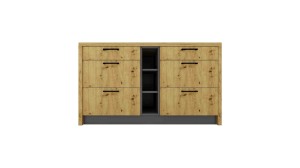 Blat oraz ściany boczne wyspy do kuchni wykonane są z płyty laminowanej o grubości 36mm. Przegroda dzieląca wyspę kuchenną na przestrzeń z hokerami i przestrzeń na szafki kuchenne wykonana jest z płyty laminowanej o grubości 16mm. Wyspa do kuchni została wyposażona także w system cichego domykania drzwi, co zwiększa komfort i bezpieczeństwo użytkowania mebli. Drzwi są uniwersalne i można je zamontować po prawej lub po lewej stronie. Wyspa kuchenna gwarantuje komfortowe i bezproblemowe korzystanie oraz trwałość całego mebla przez wiele lat użytkowania.